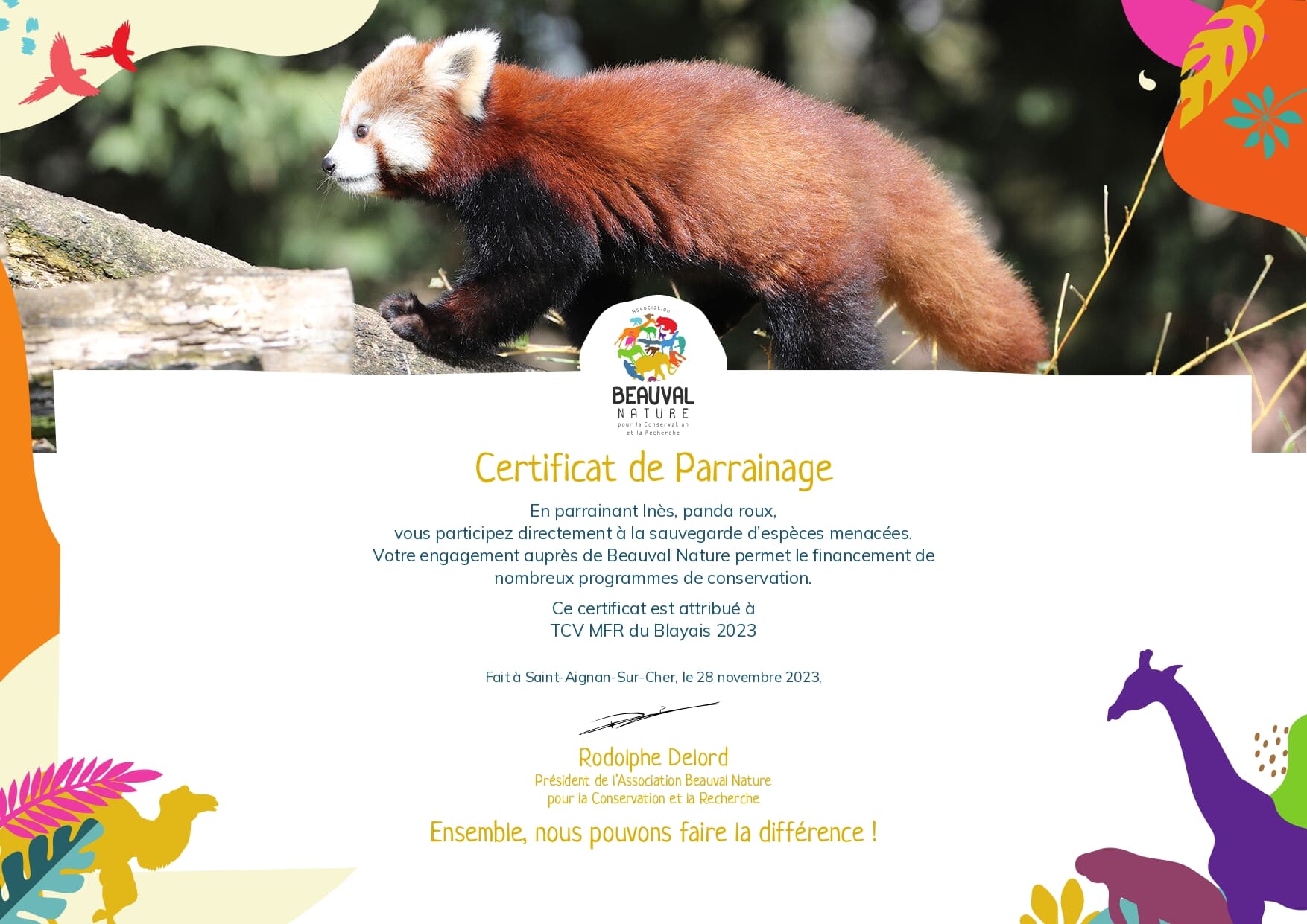 Du 2 au 5 avril, les 2nde TCV partiront direction le val de Loire. Sur place ils auront l’occasion de visiter plusieurs chĂ¢teaux mais aussi le Zoo de Beauval. Pour la 2ème annĂ©e consĂ©cutive, la MFR a donc dĂ©cidĂ© de parrainer un animal phare du Zoo.
