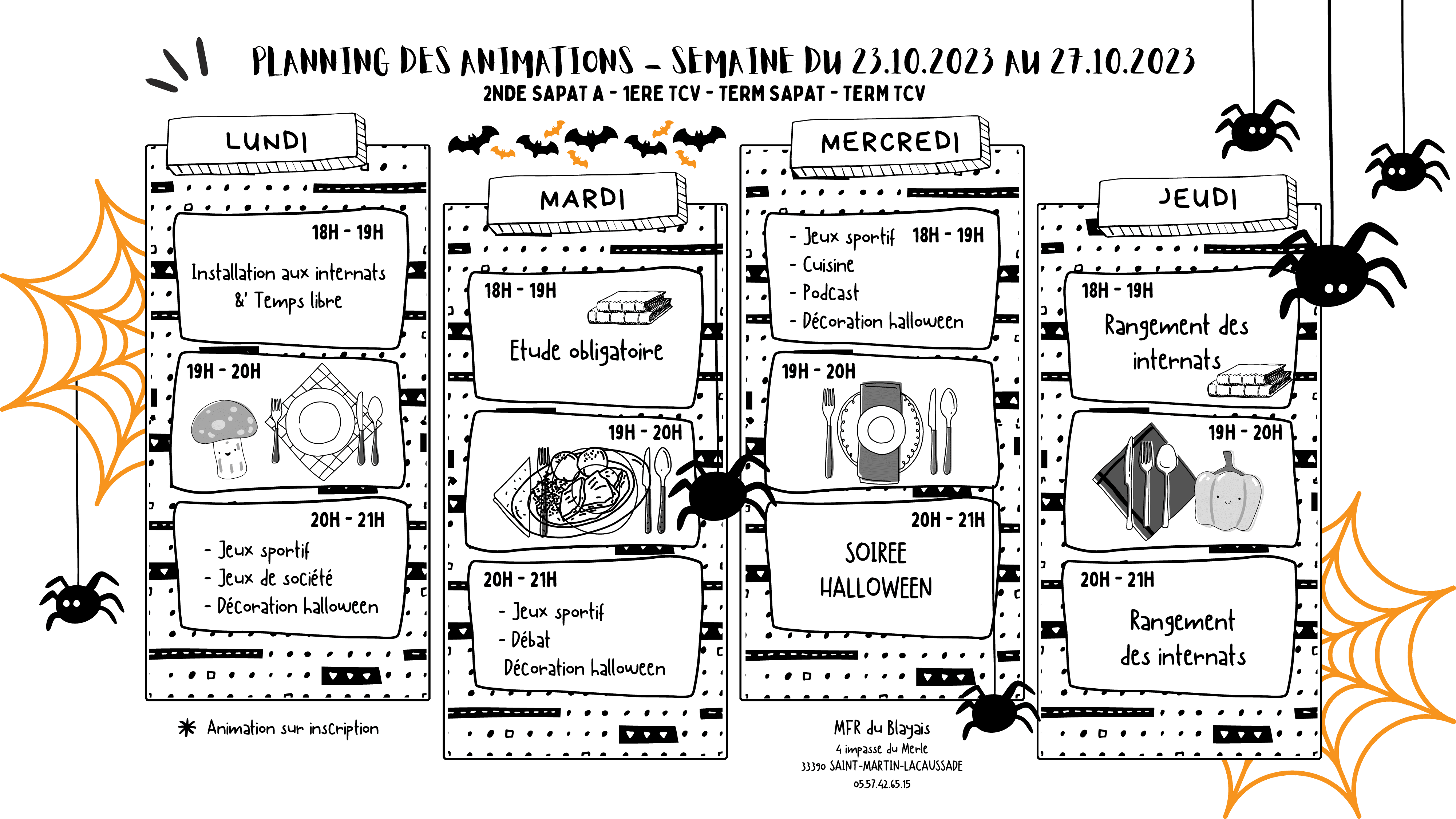 En effet, le temps du soir est très important pour les internes, qui représentent une majorité d’élèves à la MFR. Ces soirées sont animés par deux animateurs/surveillants de nuits, deux moniteurs et deux animatrices supplémentaires qui viennent renforcer l’équipe sur certains jours.